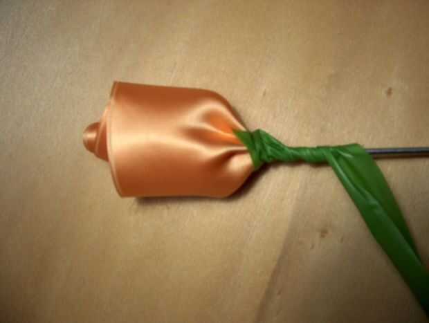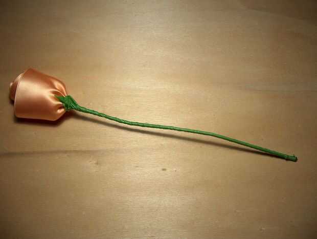 Siguiente es el tallo. Puesto que la parte donde se une la tela al hilo muestra la costura descuidada, comienzo allí poniendo el extremo de la cinta de floristería, luego enrolle. Tratar de estirar la cinta y envuelve alrededor de la base de la flor y el stem.l en el extremo del alambre Envuelva un poco extra, estirarlo hasta que se rompe. Cinta de floristería permanecerá en su lugar sin tener que pegar si se estiran mientras esté! Si usted quiere usted puede probablemente hacer algunas hojas, sólo envolviendo el extremo de una forma de la hoja al alambre.
