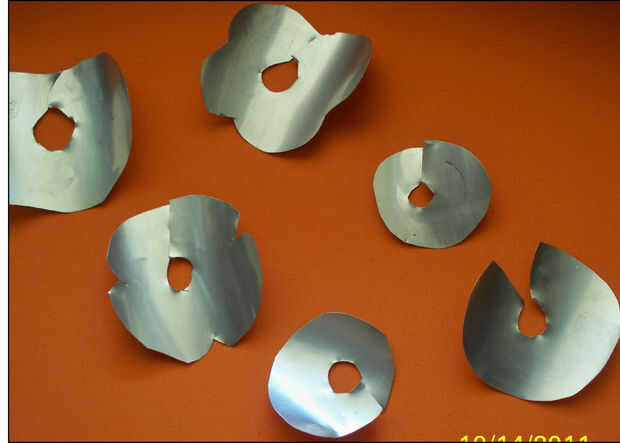 * sé que no es realmente estaño, pero es una palabra corta para reemplazar el aluminio! Fotos de seguir y cortar el material en 6 formas como se muestra. Tres de las formas son los pedales más baja, y tres son los pedales superiores o interiores. He hecho muchos de éstos en papel, y las técnicas son esencialmente lo mismo: aunque es un poco más difícil trabajar con la lata. Ir a este instructable si quieres que esos detalles a seguir, o hacer unas rosas de papel.