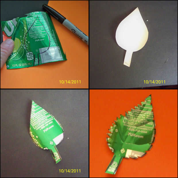 Dibujar una forma de la hoja como se muestra y simplemente cortado con las tijeras. Han serrado la hoja para el efecto, pero no es necesario. También, usando una pluma o un lápiz, dibuje venas de la hoja en la superficie para hacerlos aparecer más vida.