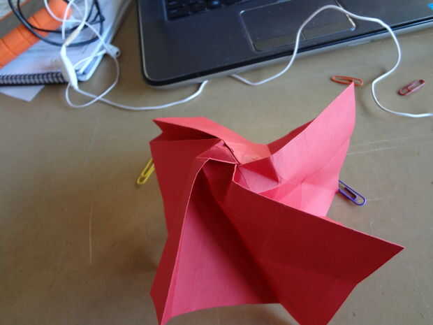necesita completar el resto de la hoja alrededor de esta plaza que acaba de hacer. Para esto puede aumentar los pliegues diagonales, quien no toca la esquina.