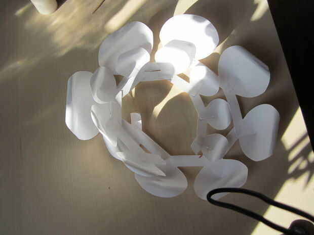Continuar pegando los pétalos hasta que tenga una especie de forma helicoidal de pétalos ensartados como en la foto.