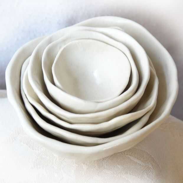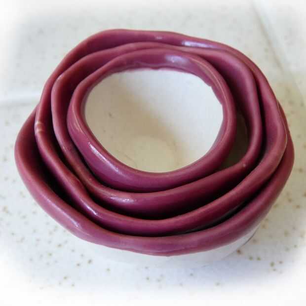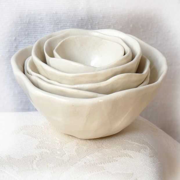Cuando se apilan juntos, tazones de fuente pequeños forman una delicada rosa. Cuando se separan hacen bonita inmersión o conjuntos de condimento. Los conjuntos de rosados son tan hermosos y único hacen maravillosos regalos y regalos de boda perfecto.
