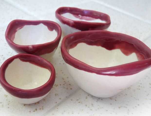 Decidir qué color usted quiere sus rosas y el mismo color todos los tazones de fuente en un conjunto. Rosas blancas acaba de obtener un esmalte claro. Hacer las otras rosas blanco (esmalte transparente) con el color en los bordes superiores solamente. Puede color de cada tazón de fuente si lo prefiere, sin embargo. Asegúrese de que el esmalte dentro y fuera de cada recipiente.