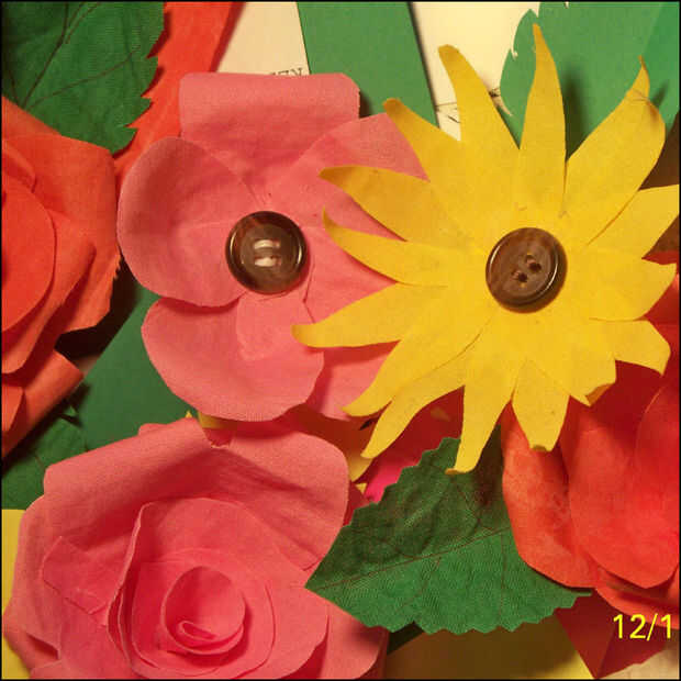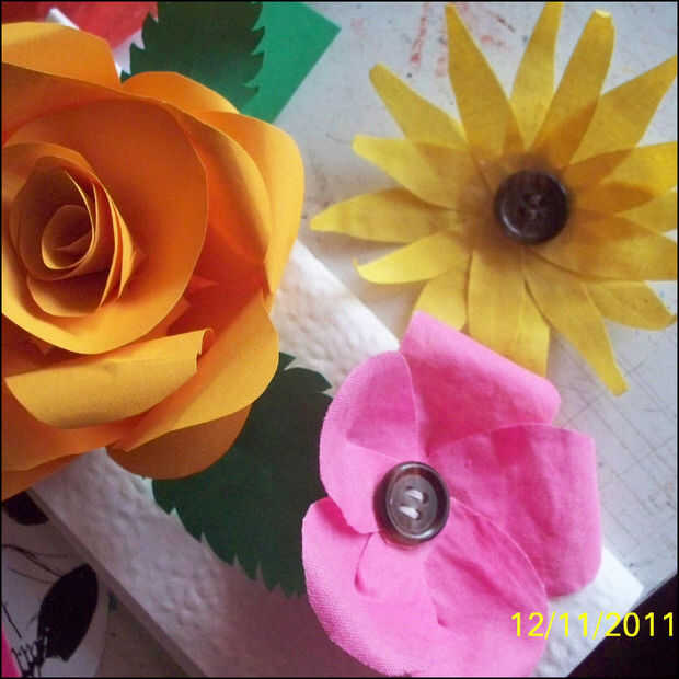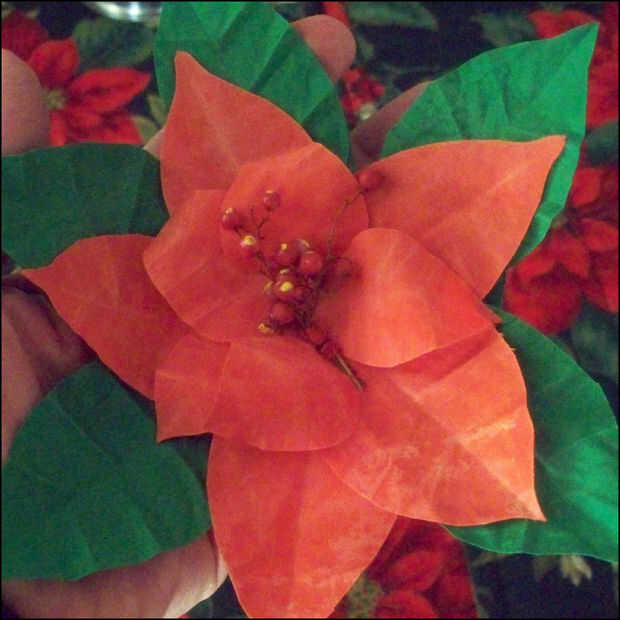 Para un efecto diferente, hice algunas margaritas y flores de tipo genérico.  A esto añadí un botón como el centro para darle un aspecto acabado.  ¿Y por supuesto lo que es la Navidad sin una flor poinsetta?  La variedad que uno podía hacer parece ser ilimitada.