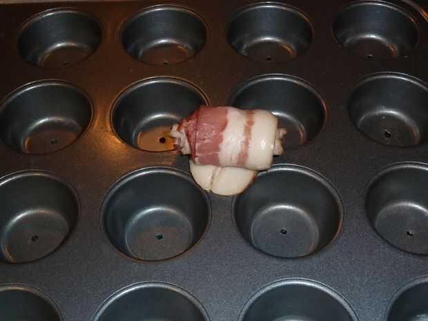 Coloque todo el tocino en los moldes de muffin presionándolo ligeramente para "asentar". Los fondos serán estilo fuera un poco.