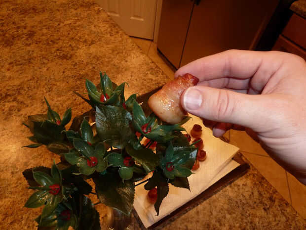 I VI una foto de un ramo de rosas de tocino y pensé que era una gran idea para mi esposo para el día de San Valentín. Pero yo soy perezoso y odio trasteando con tocino. Así que se me ocurrió una manera bastante fácil de hacer.Puede no parecer muy "