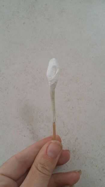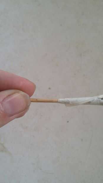 Tomar uno de los palos y con un pedazo de periódico, que el centro de la flor. Se hará un pequeño brote. Asegúrese de que la cinta quede ajustada alrededor de la palanca, de lo contrario la yema se convertirá cuando intenta agregar los pétalos.