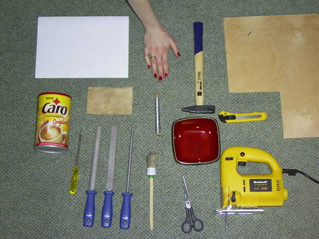 - Un clavo para montar el corazón en la madera (paso 9). El clavo debe ser aproximadamente de 15mm de largo que la madera es grueso. Pero la longitud exacta no es importante.