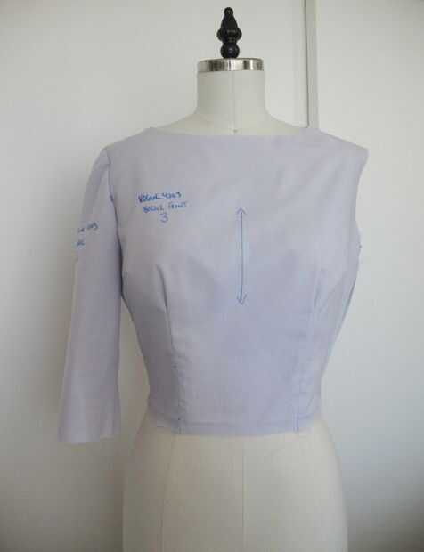 Aunque no es algo que hago para cada vestido que cosa, decidí hacer una muselina de este patrón. Y, francamente, el resultado no se ve en las cercanías tan lindo como la ilustración. En cambio, parece a otros básica blusa y falda. Puesto que la hoja de corte-para arriba que solía construir la muselina es un peso similar al algodón acolchado, claramente algo tenía que fijarse...