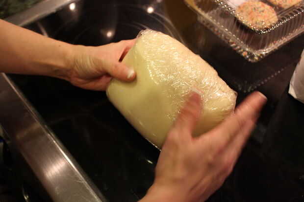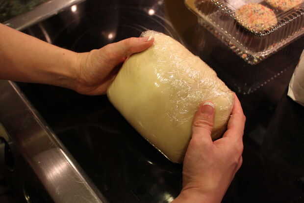 -Retire la masa. Envolver bien en plástico y dejar enfriar en la nevera por 6 horas. No más de 15. 15 horas de aburrimiento. Encontrar un pasatiempo!! Para mí, que simplemente esperé hasta después del trabajo.