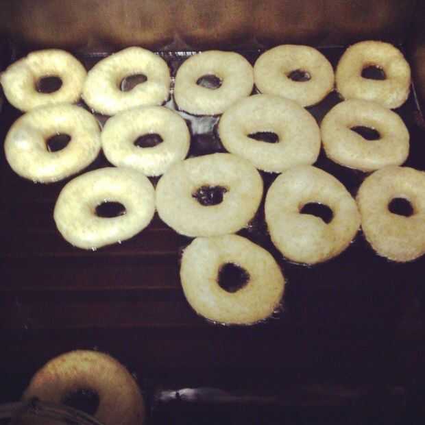 Donuts1 taza de leche descremada o 1 taza de leche regular1 cucharada de mantequilla1 1/2 cucharaditas de jugo de limón2 1/2 tazas de harina3/4 tazas de azúcar granulada1 1/2 cucharaditas de bicarbonato de sodio1/2 cucharadita de vainillaAzúcar de ca