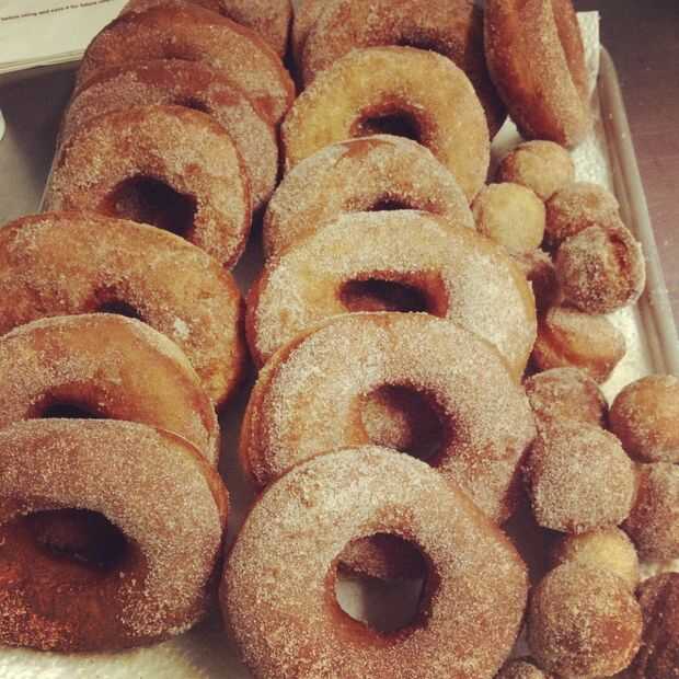 Poner todos los ingredientes en una máquina de hacer pan en el ajuste de la masa e ir hacer otra cosa para 1,5 horas o hacer como si fuera cualquier otro pan. una vez levantado en fábrica o tradicionalmente, punta hacia fuera y aplaste la masa y girar sobre una superficie enharinada. Rollo de masa de 1/2-pulgada de espesor y use un gran Cortador redondo cortar círculos y un cortador redondo más pequeño para cortar los agujeros. En una hoja engrasada y levantarse 10 minutos más. Caliente una o dos pulgadas de aceite en una cacerola pesada grande a 350-375 grados. Instalar una rejilla para enfriar sobre una placa para horno y ponerlos cerca de la olla. Poner sobre una taza de azúcar impalpable mezclada con 1tbps de canela en polvo en un tazón mediano y tener a mano que así. Añadir 3 o 4 donas al aceite. Debe chisporroteo inmediatamente. Cocinar rosquillas hasta marrón claro a un lado. Utilizar tenazas o una espumadera para voltear las donas, cocine hasta que el segundo lado es marrón claro. Transferencia buñuelos cocidos a la parrilla y dejar enfriar/drenaje durante unos minutos de enfriamiento. La inmersión rosquillas en azúcar para rebozar. Repita con rosquillas restantes. Servir caliente en la medida de lo posible.