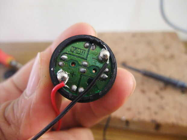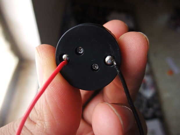 -Sacar estos cables a través de la tapa y orificios de la misma para el + ve y - ve conduce. Tenga en cuenta que uno tiene que pulsar esta tapa un poco que hay apenas cualquier espacio