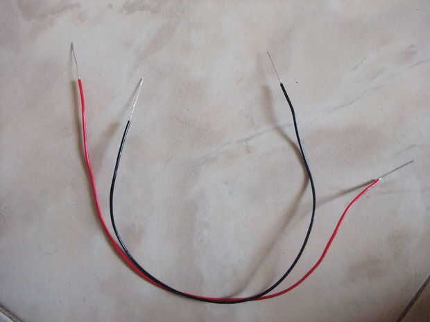 -Recolección 2 cables aislados y uno a lo 'positivo' y el 'negativo' lleva la soldadura
