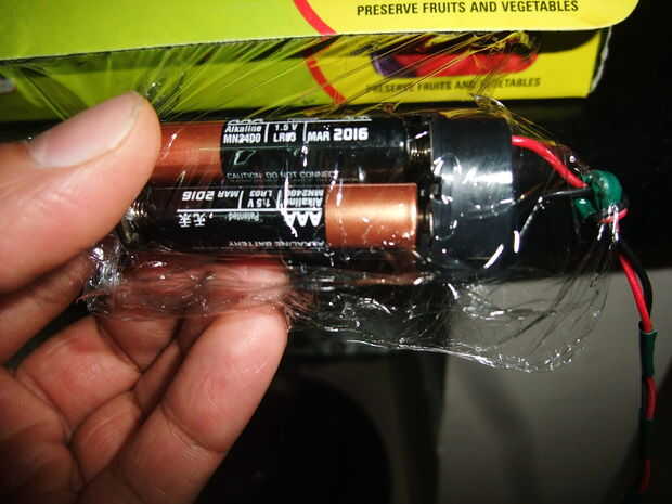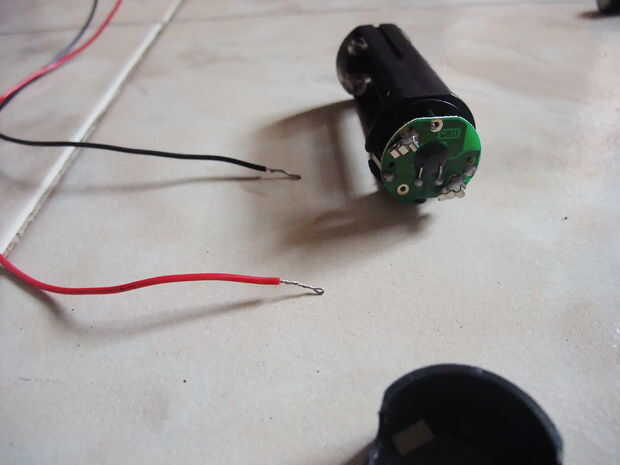 -Sacar estos cables a través de la tapa y orificios de la misma para el + ve y - ve conduce. Esta vez no hay apenas espacio suficiente para los cables que salen