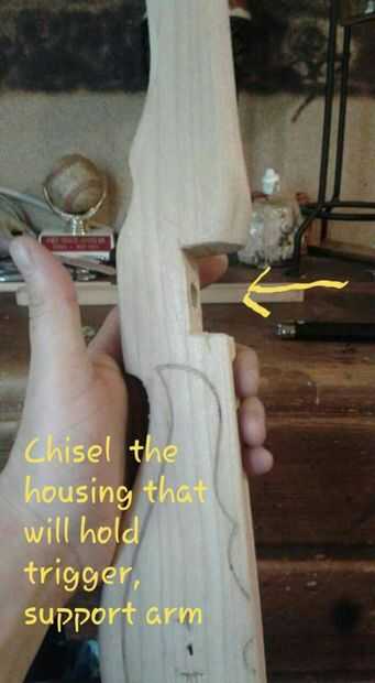 Cuando decidas donde su mecanismo de disparo va a salir en la ballesta y luego tienes que decidir qué tipo de disparador que vas a utilizar, sus disparadores varios por ahí pensé en todos ellos he mirado en la lista de desencadenadores y miré mi pila de madera que tenemos que trabajar con y averiguado este mecanismo iba a ser el más fácil gatillo simple basado en un fulcro de las clases bisagra gatillo manija el desencadenante real sí mismo es es una madera Dowling en la parte superior se conecta una mano tallada flecha fuera de la mesa antigua con una pieza de metal que sobresalen a través de la flecha que es regular y permitir la flecha a izar uniformemente al lanzar el valle para la flecha con el simple uso de una mano por lo que acabo de cortar una línea de la mitad de la profundidad y es necesario entonces que la casa de corte tomó los cinceles y el trabajo de lado a lado en ángulo hacia abajo hasta el final del valle hice eso suficiente y él apenas suficiente para que sostenga una flecha bien las llaves que me partí por la mitad y poner a cada lado de la ballesta para la fuerza agregada lo que ésos en corte fue colocar el cincel en el medio y golpeando con un martillo que es cortarlo por la mitad que asegurado con madera pegamento para madera y tornillos, tomados de la tabla sí mismo bruto montaje de la flecha la cadena el mecanismo del gatillo y me retire el trozo de pasamano de latón de la tabla para doblar en forma de la carcasa ir sobre el gatillo para arrestar a brazo poner sobre la parte posterior final de la flecha añadiendo más estabilidad para el lanzamiento de la flecha y lo que es para que no caiga hacia fuera