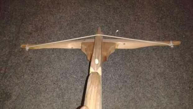 Esto es donde todo el trabajo duro paga y su imaginación trayendo todas las piezas juntas, el arco, la acción, el gatillo, el ensamble del gatillo el gatillo de la vivienda por último la cuerda y la flecha. Prueba de fuego está al lado en este momento mi proyecto. Esto se ha convertido en arma mortal bastante así que tengo que advertir esto puede penetrar la piel, empujar el ojo hacia fuera, matar el animal, herido su amigo no la apunte, no disparar a nadie esto es muy mortal no estoy seguro de la fuerza del compuesto pero cuando disparé la flecha pega cuarto de camino en madera contrachapada , seguro