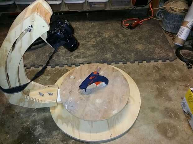 La aplicación Autodesk 123D Catch vamos a subir una serie de fotografías de objetos para crear un modelo 3D del objeto de esas fotos. Si usted lee a través de, las sugerencias son tomar una serie de cuadros alrededor del objeto de unas alturas asegurándose de rodear el objeto entero. Pensé que una forma elaborada e innecesario ser anal retentiva acerca de cómo las imágenes de la misma altura todo el camino era alrededor crear un montaje giratorio para la cámara obtener precisamente alineados fotos.