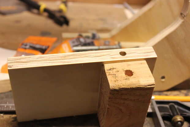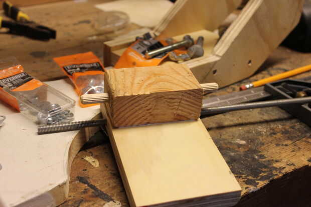 He añadido un bloque debajo de la montura de cámara para agregar a la dirección de la misma medida que se mueve en la ranura de 2 x 4 y un par de pasadores de madera.