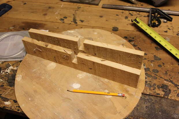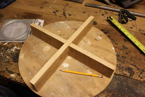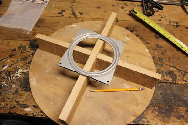 El apoyo realmente hace el trabajo duro y normalmente recibe poca gloria, pero esto es lo que viene después. Dependiendo de cuán grande es su hardware lazy susan (fue relativamente super barato y lo hizo tres veces el trabajo sobre estas piezas debido a él). Elegí el 6" susan perezoso, que no me dan una gran abertura en el centro de mis piezas de soporte para conectarse a través, así que hice mi apoyo piezas en forma de T para estar debajo de la base. Yo podría probablemente han salido sin esto, pero me sentía froggy.