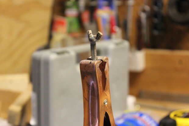 Con ese agujero perforado, mantiene el soporte en su lugar, poner la allthread por el Monte y la ranura y se mantuvo la cámara en el Monte para localizar dónde perforar el agujero de montaje del trípode. Tengo mi medida y perforar un orificio para el perno de cámara de 1/4-20. Tuve algunas allthread de 1/4-20 y otra vez había soldada una tuerca de mariposa para hacer un tornillo de mariposa. Para medir la allthread en había atornillado a la cámara cuerpo, poner el cuerpo en el Monte lo mejor que pude con el allthread, respaldado por el allthread hacia fuera sobre una 1/2 vuelta y medido en la parte inferior de la montura, marcado con cinta para cortar contra. Forro de 1/2 vuelta antes de que se mida la longitud te da espacio para el perno entrar en la cámara y conseguir un ajuste perfecto. De lo contrario puede fondo demasiado pronto y no apretar. Si corres que siempre puede moler abajo el extremo del perno.