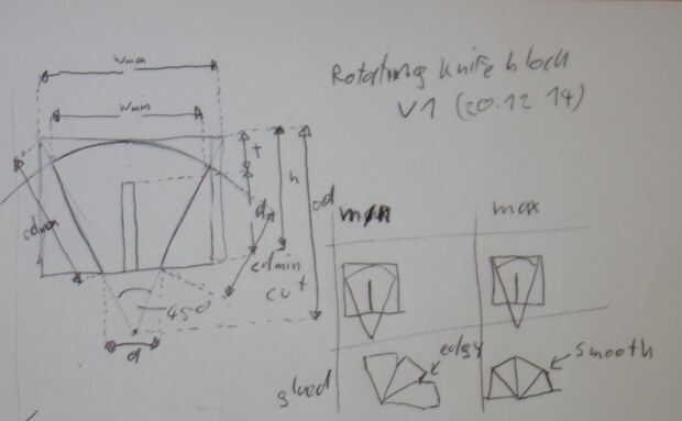 la distancia entre los dos cortes biselados es muy crucial para el diámetro resultante del bloque del cuchillo.