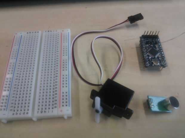 このままでも, 声に反応して振り向く簡単な装置になりました. このまま何かくっつけただけでも楽しいです.