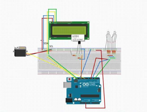 Configuración básica de este proyecto utiliza un arduino para alimentar todo el sistema. Tienes un sensor IR que recibe órdenes desde un mando a distancia, arduino a continuación, los comandos de actualización de la pantalla, activar o desactivar los LEDs y el servo de rotación.