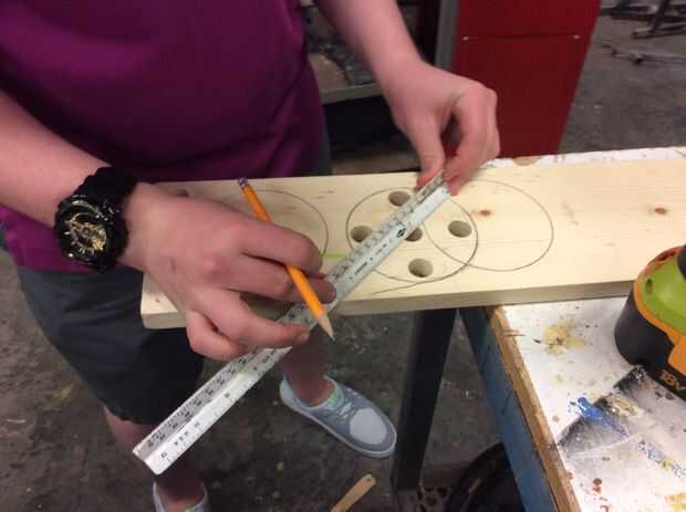 2. Igualmente espacio 4 agujeros opuestos en el círculo con una regla, en forma de un cuadrado