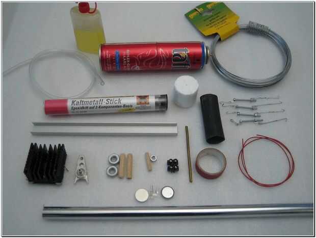Una pipa (latón o aluminio) con un diámetro aprox. de 20 mm y 40 mm de longitud. Usé un viejo tubo cromado de una ducha (esa parte, donde se montó la regadera).