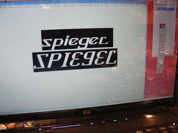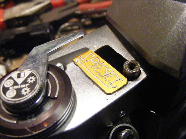 theres un agujero es necesario cubrir. primera vez de una fuente real al grabado, que dice espejo en alemán,(german camera)...