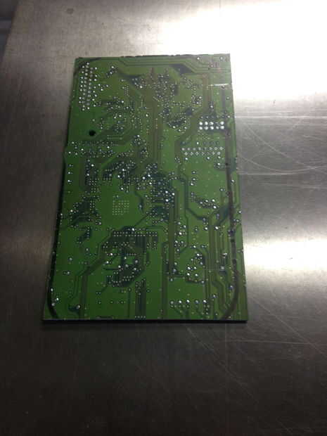 encontré un PCB que tenía un montón de interesantes huellas en la parte que quería utilizar. Esbocé mi teléfono y cortar, que el PCB hacia abajo sobre mi mesa de sierra para las proporciones adecuadas. En mi caso, la anchura era crítica para el ajuste, pero la altura era arbitraria. Terminé con un aproximadamente 3 "x 4" placa.