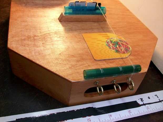 Cuadro 1-resonador -- arena y acabado. Corte los agujeros superiores del sonido en él... Taladre dos agujeros. Uno para el eje y otro para el tornillo de tope. Item2.