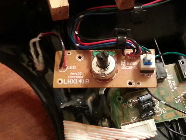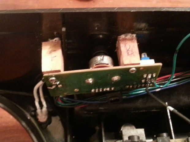 Lo siguiente que tenemos que hacer antes de que pegue todos juntos es colocar el control de volumen en el lado del teléfono. Elegí el lado derecho porque quería que el LED de ese lado también. Es totalmente hasta usted, la restricción sólo que tienes es cuánto duran los cables de dos tableros. Lo que se necesita es crear a algún tipo de soporte para el tablero. Después de calcular exactamente donde usted quiere el control y taladro para, hacer algunos mensajes (he hecho mía de la madera) y encolarlas. Ya hay algunos agujeros en la placa de circuito que usé para mi montaje. Desde aquí solo tiene unos agujeros taladrados en los postes donde desea la tabla para sentarse.
