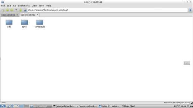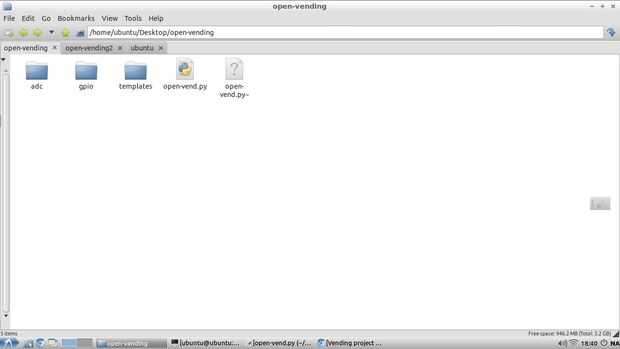 Modificado el código basada en web para adaptarse a nuestras necesidades y había reelaborado el archivo .html de la plantilla. Se necesita sólo un módulo python más--el ADC o el módulo convertidor analógico a digital. El módulo ADC que nos permite leer valores desde el detector IR y control cuando gira el motor principal. Así que empieza por crear una nueva carpeta llamada "open-vend" o cualquier nombre inteligente flota su barco. Estaremos más o menos copiando la estructura de carpetas y directorios que estaban presentes en la carpeta basada en la web para ir adelante y en el nuevo directorio de crean una carpeta "templates" y copia en la carpeta "gpio" python módulo desde el directorio web-led. En el paso 4 hemos descargado una carpeta desde github llamada "python-pcduino". Permite redescubrir esa carpeta y en sus muestras de/adc_test/directorio de copia de la carpeta de adc y pegarlo en la carpeta abierta-vend.