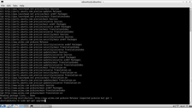 Estos comandos se asegurarán de que su pcDuino está actualizado y listo