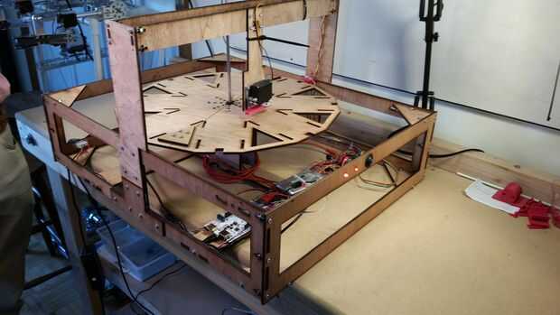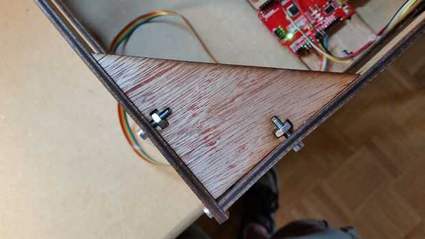 La construcción de la base puede ser un poco lento. Los agujeros en la madera por el láser son el diámetro del eje del tornillo, lo que significa que los hilos de rosca de tornillo de sí mismo en el agujero. Es un poco más difícil iniciar cada tornillo, pero encontramos que mantienen muy bien.