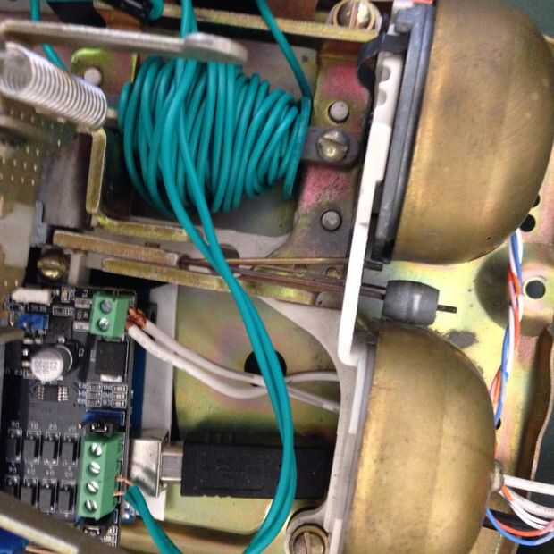 El toque final es lo que el teléfono suene. Tomó inspiración de proyecto de Andrew Stella otra vez y utilizar un escudo de conductor del motor y un electroimán crudo.