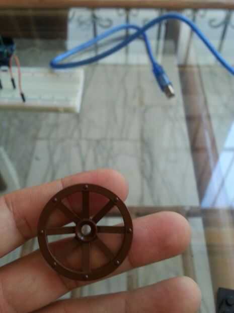 3-deje su creatividad funcionar salvaje y encontrar un mecanismo giratorio para girar la cinta, tuve suerte de encontrar piezas de lego que se ajusten exactamente.