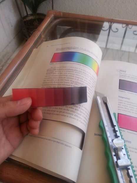 1 - Buscar o imprimir una tira de papel que contiene un sombreado degradado de cualquier color. sólo asegúrese de que la longitud del papel es mecanismo rotatorio o lo suficiente para cubrir el diámetro de la cinta, que siempre que tienes en mente y suficiente ancho para asegurar buena reflexión. véase el cuadro