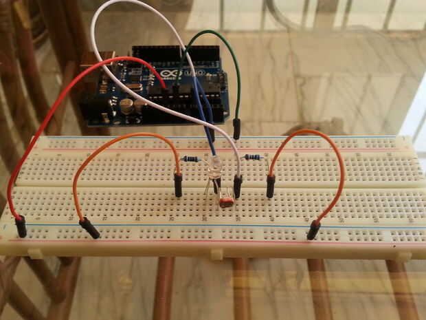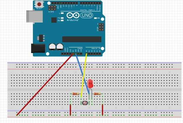 Este tutorial le mostrará cómo construir un circuito básico de Arduino que puede controlar una divertida bola color sketch en el proceso.Se necesita:1 x placa Arduino (estoy usando un Uno)1 x Breadboard1 x foto-resistencia1 x 10 k Ohm Resistor (marró
