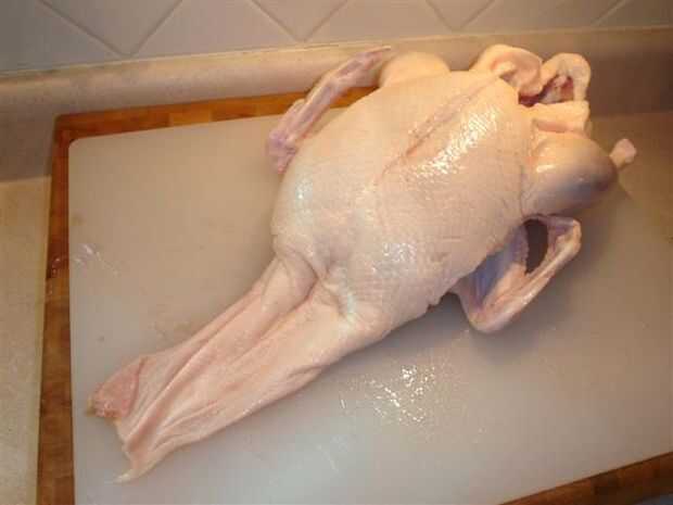 También a diferencia de la tienda comprado gallinas, patos vienen con la piel del cuello todavía unida. Esta había asustado me un poco justo porque no lo esperaba.