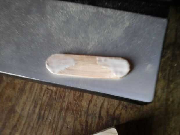 Si tu caja no es "dividir", sólo pegar el mango en donde usted lo desee. Si usted usa mi diseño o uno similar, alinee los cajones como se tratase de un cajón. Asegúrese de que hay algo de espacio entre ellos. Coloque pegamento en el mango y colóquela por lo que es la mitad en un cajón y la otra mitad en el otro. Una vez que el pegamento está seco, cortar el mango de acceso.