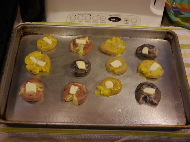Esta receta la patata fue descubierta accidentalmente cuando estaba cocinando algunas sobras cocido al horno patatas con mantequilla. Cuando terminé de cocinarlos, tomé un bocado y se dio cuenta de que era la receta de patata buena estuve tratando y