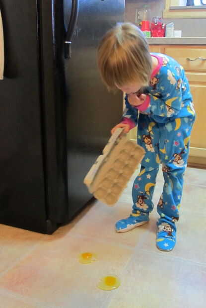 Esperar a su víctima a salir brevemente de la sala, rápidamente establecen los huevos y el niño con el cartón vacío de la etapa. Cuando la víctima se vuelve. Una, "OOPSY, fue un accidente" está en orden. ¡ Se ven tan reales, no será hasta que tratan de limpiar el desorden que se dan cuenta que han sido engañados!