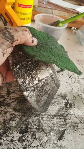 Tomar un estropajo húmedo y frote hacia abajo su pintura negra Continúe hasta que usted esté satisfecho con su patrón La pintura negra se pega a los pliegues en el papel y crear hermosos diseños