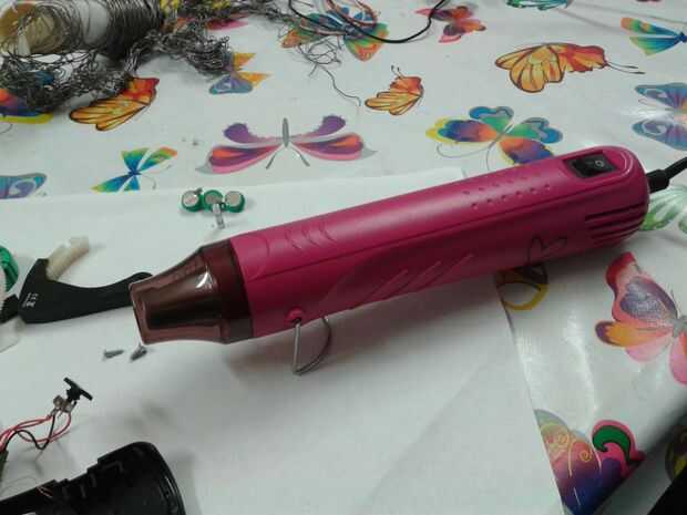 1) el plan A era hacer un "bombeo de energía" en el caso de la antorcha a la toma USB de la casa. ... Un soldador no estaba suficientemente - caliente, no genera un calor difuso para derretir el caso. Así que, tomé prestado el Coventry Makerspace turbo-chalado fabricación de máquina de aire caliente - no no es uno de ésos poncy azul o negro unos, es turbo rosa! Bueno, como se puede ver, hizo un gran trabajo de gota de resina, pero lamentablemente había deformado la antorcha todo nuevo. ¡ D ' Oh!
