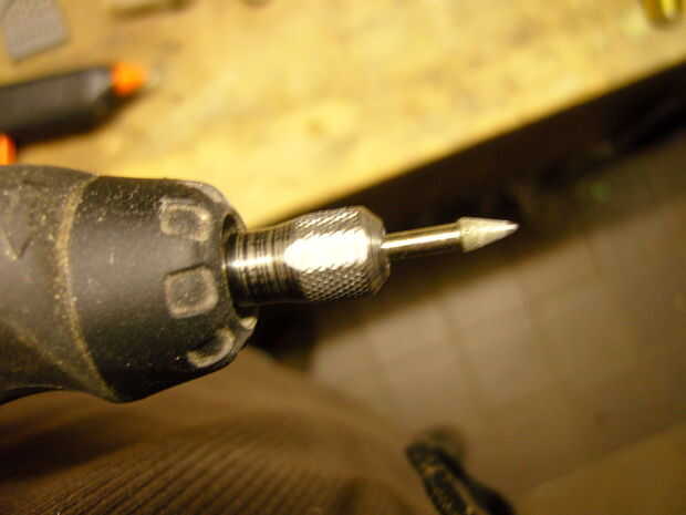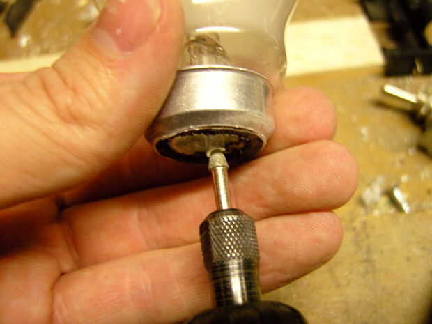 La bombilla halógena se va en el cuerpo de la luz. Para quitar el tubo de vacío lo hice por ajustar el final fuera con unos alicates y luego usando un cono esmerilado robar o lo que sea su llamado en la dremel empuja suavemente hacia abajo el centro del tubo que se rompe aparte muy bien.