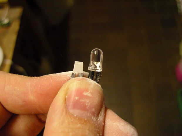 Por lo que podía pegar más en lijar los LEDs, luego conectado a dar una vuelta juntos y les puse indide holowed cabo buld y selló en el uso de pegamento caliente.