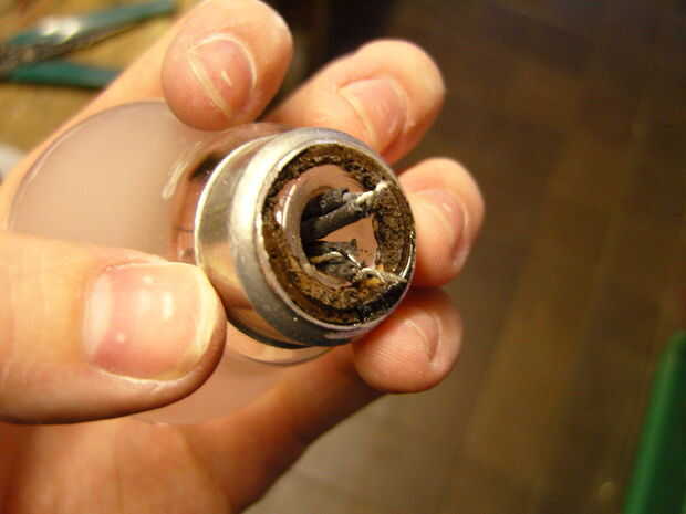 si tienes una bombilla E27 LED que parpadea al inicio arriba o ya no alcanzará su brillo máximo, no tirarla! Solo tienes que cambiar los condensadores electrolíticos en la fuente de alimentación.Paso 1: Inspección del bulbo La fuente de alimentación